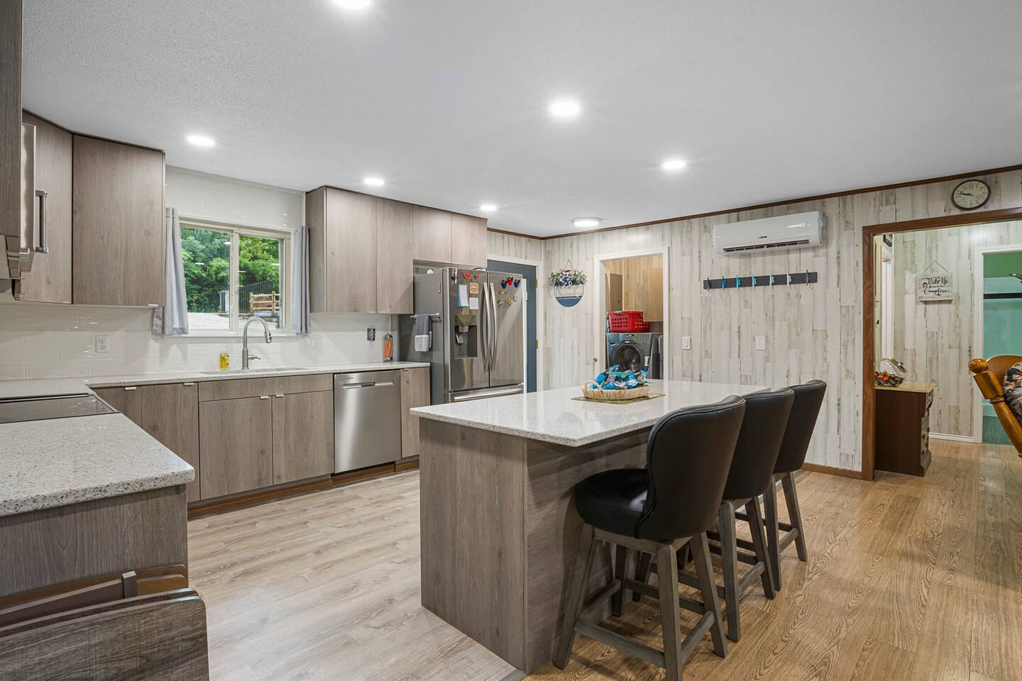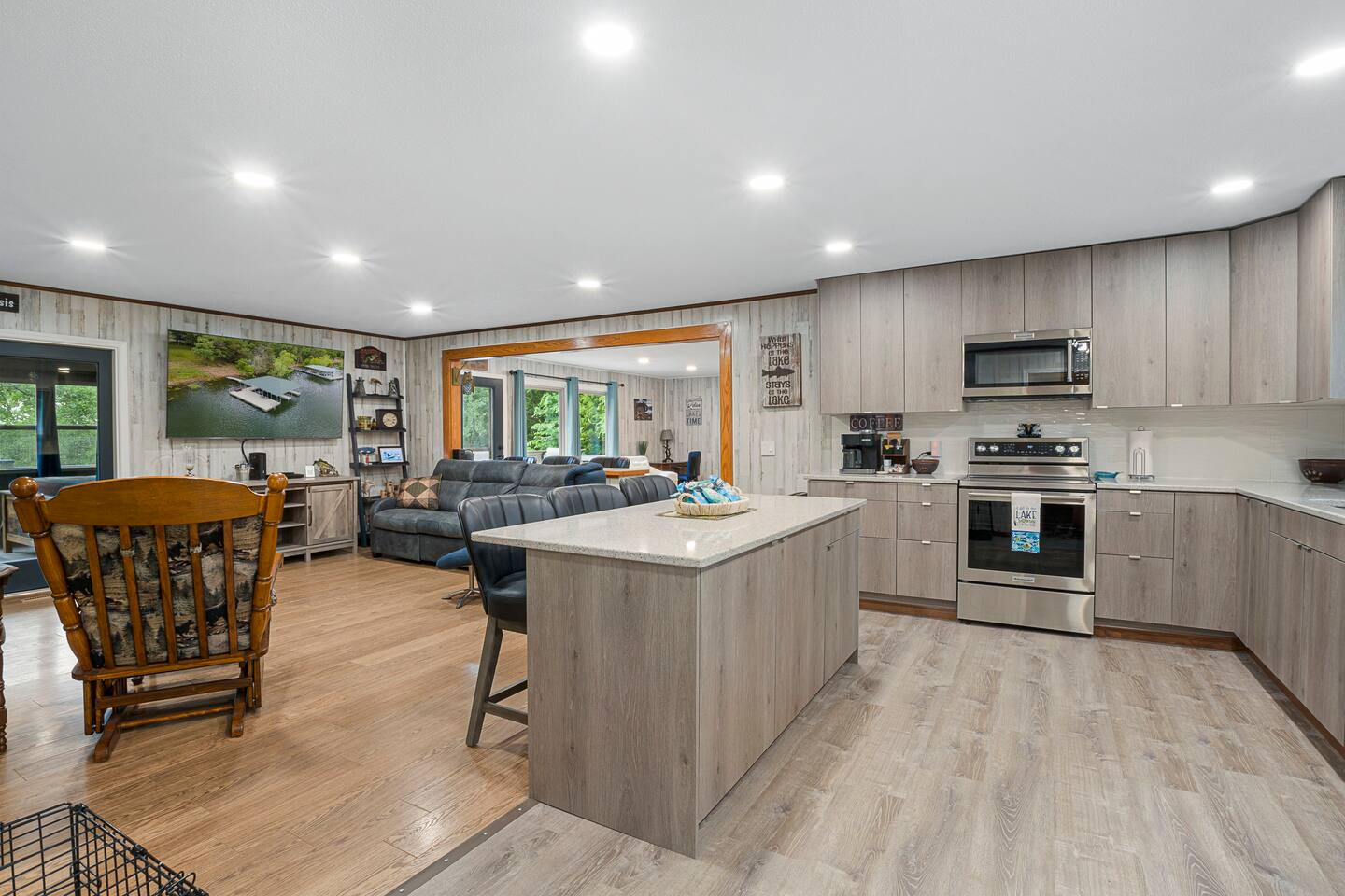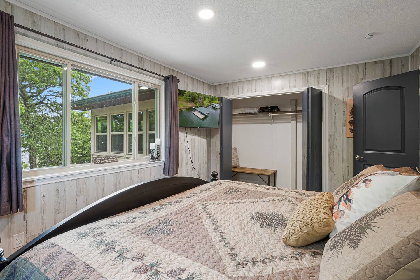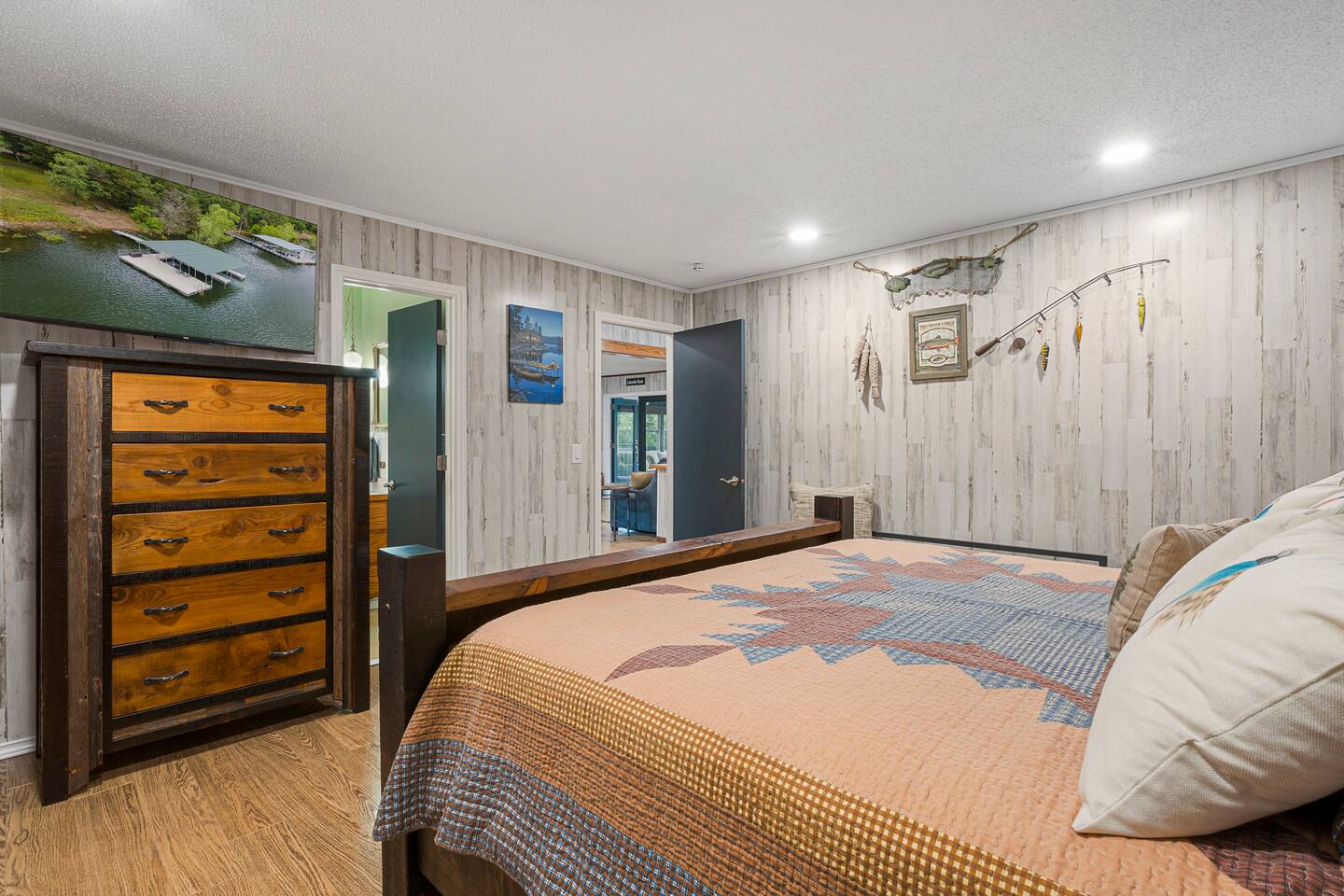 Welcome to our lake home! Our home sits right on the point with a stunning view of Table Rock Lake. There are new furnishing throughout, a TV in the family room and one in each bedroom. Three bedrooms have king beds, the 4th bedroom has a twin bed and a bunk bed with a full size on bottom and twin on top. There are two full bathrooms, one in the master bedroom and one in the hallway. The kitchen has all new appliances, an island with bar stools and is fully stocked along with basic seasonings like salt and pepper. There is also a big pantry around the corner from the kitchen with additional kitchen items and plenty of room for your food. The family room and living room are separated by a countertop that also has bar stools, for an entirely open concept. The outdoor cooking area Has ceiling fans, nighttime lighting, a refrigerator, gas BBQ grill, large gas griddle, pellet smoker and a double gas burner so you can cook to your hearts content all while overlooking the lake! It is covered, so you can still enjoy the outside when it’s raining. Then at night turn on the lights or spend time by the campfire/firepit. Both areas have additional seating. Private Dock A short walk down the gradual sloped hill (the last 15’ to 20’ becomes rocky) will take you to the private dock where you can fish, swim, sunbathe or use the kayaks located under the back deck. Other Things to Note: The house is located in a quiet neighborhood, has private parking and has gates that can be closed for more protection for your children or pets. The kitchen is fully stocked with flatware, cooking utensils, dishes, coffee mugs, microwave, coffee maker/keurig combo, toaster, pots, pans, crock pot, storage containers, serving platters/trays and basic spices. Both bathrooms have shower dispensers with shampoo, conditioner and body wash, all are full upon your arrival. We offer a starter supply of coffee pods, coffee, sugar/sweetener packets, paper towels, toilet paper, trash bags, hand soap, dish detergent, cleaning supplies and laundry detergent. We also provide starter firewood for the fire pit. We offer a variety of family games. We have Wi-Fi, Direct TV and smart HDTV’s so you can sign into your own streaming services. We are just 5 minutes from town where you will find: Harter House (grocery store), Dollar General Jug n' Plug (bait, tackle and liquor) Steak Inn Casa Maya Pizza Hut (Pizza Hut has its own dock, so you can go by boat if you want.) Kings River Marina Restaurant There are two marinas nearby: Campbell Point Marina Closer by Boat (10-15 minute drive) By Car (19 minute Drive) Boat Rentals Slip Rentals Equipment Rentals (Skiing, tubing, wakeboards, etc) Kings River Marina Closer by car (10 minute drive) By Boat (30 minutes to an hour drive "depending on type of boat") Boat Rentals Slip Rentals Has its own Restaurant if you want to bring your own boat, as we are not allowed to offer a boat slip in our dock as per the Army Corps of Engineers regulations. For family entertainment: Be sure to check out these top attractions! Branson is only a 45 minute drive Branson Landing is a 54 min drive Top of the Rock is a 35 minute drive Big Cedar Lodge is a 35 minute drive Thunder Ridge Arena is a 40 minute drive Pets are allowed with restrictions: *Preferably no more than 3 pets and must be housebroken. *They are NOT ALLOWED on furniture/beds. *You know your dog better than anyone, if they tend to scratch doors/chew do not leave them unattended. *When leaving the property, lock them up in the cage provided or bring your own. No parties. No smoking/vaping inside the home.